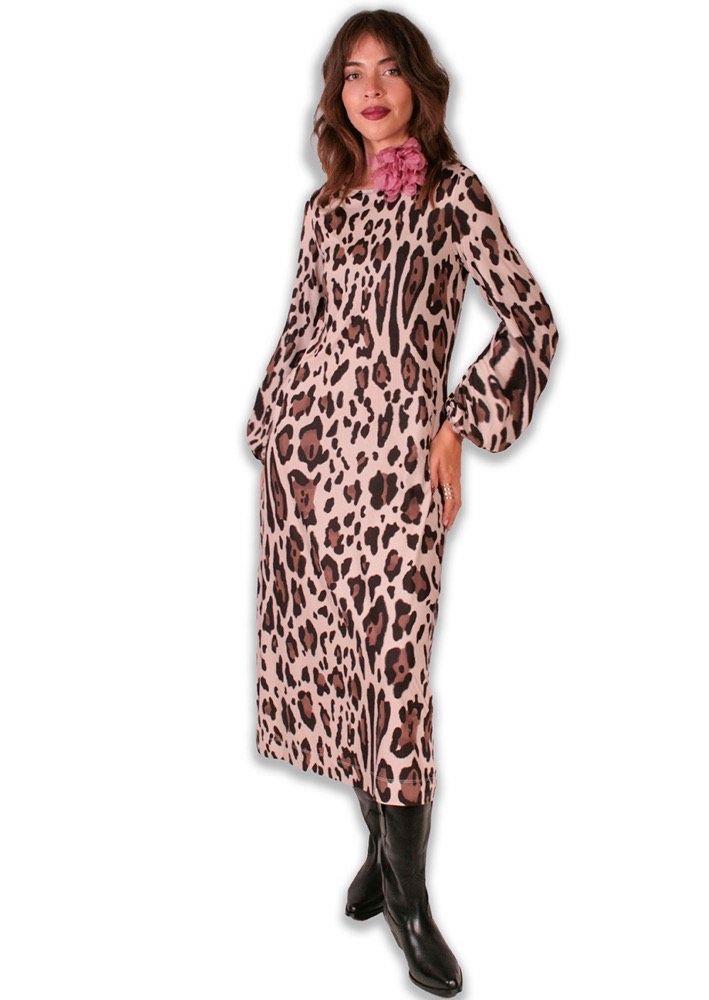 Atrévete a destacar con este vestido midi de Parole Italy, diseñado para mujeres que buscan un estilo elegante y vanguardista. Su estampado animal print en tonos neutros aporta un aire moderno y atrevido, mientras que las mangas abullonadas añaden volumen y movimiento con un toque sofisticado. El detalle floral en el cuello resalta la feminidad y convierte a esta pieza en una opción ideal tanto para eventos especiales como para looks de día con personalidad. Combínalo con botas altas o tacones para un look versátil que nunca pasará desapercibido.